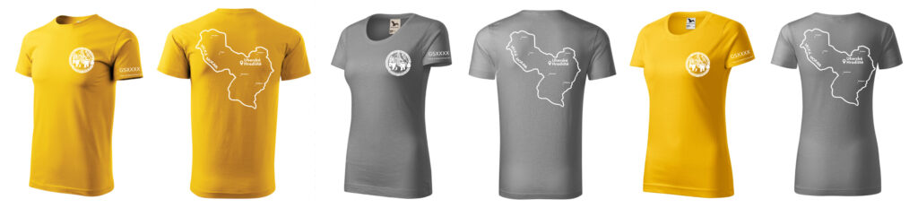 Volbu máte ze dvou variant triček, žlutou, která symbolizuje „zlatou“ jako mince symbolizující tehdejší dobu a poté starostříbrnou variantu. Každé tričko je z jiného složení materiálu.